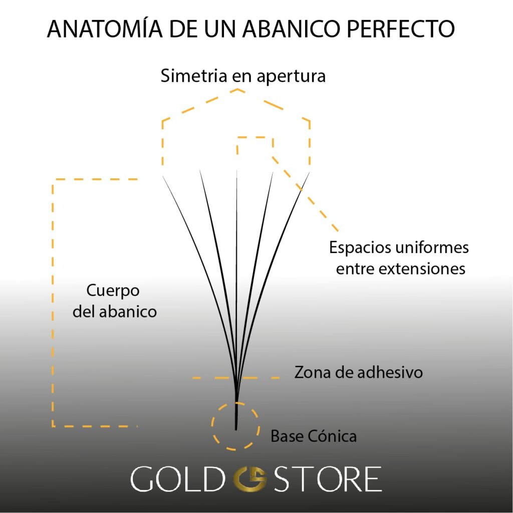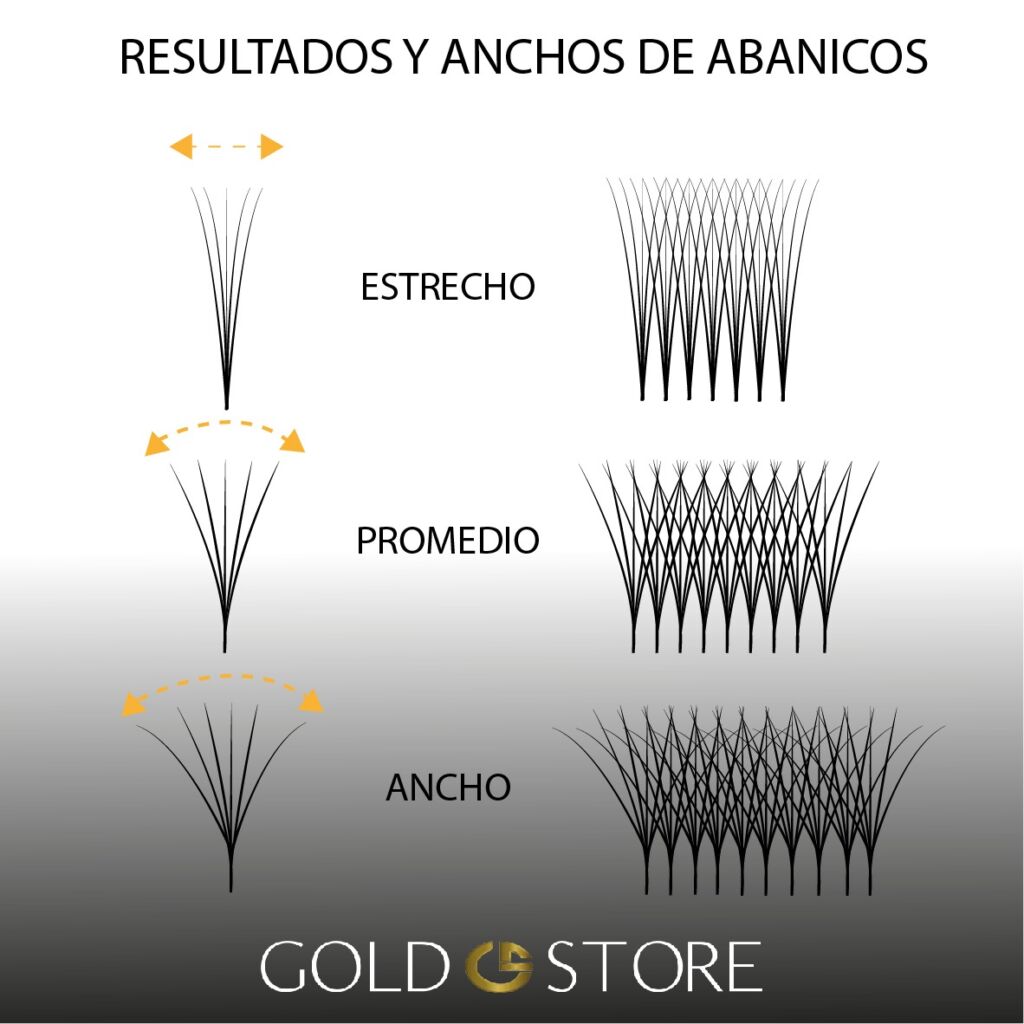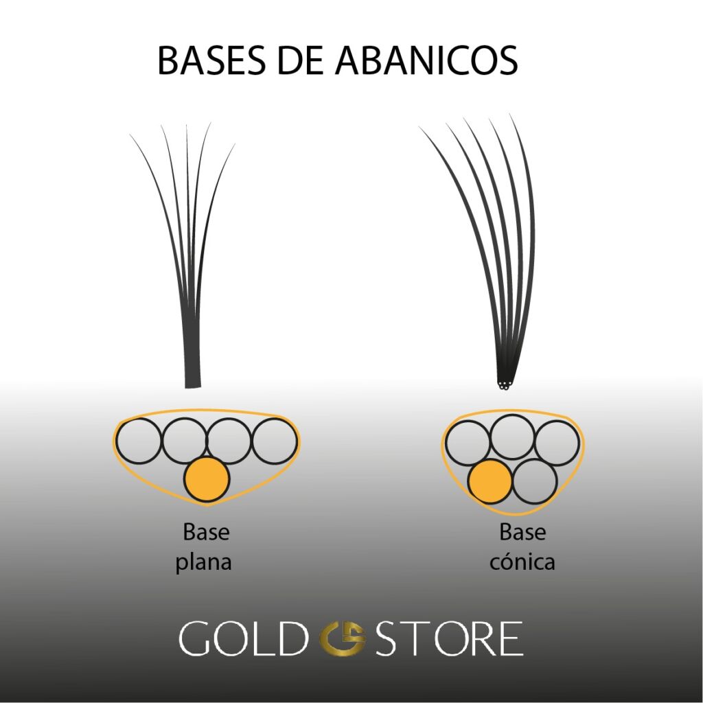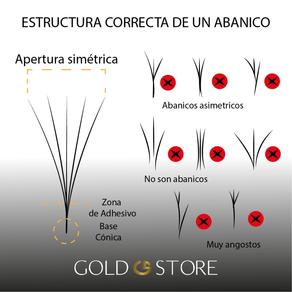 abanicos abiertos: su base es pequeña y son mas abirtos desde el inicio, es por eso que nos favorecen cuando hay pestañas naturales dispersas.