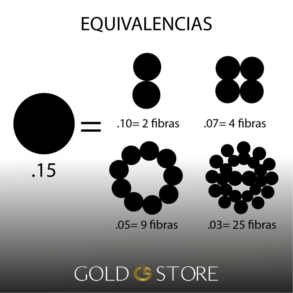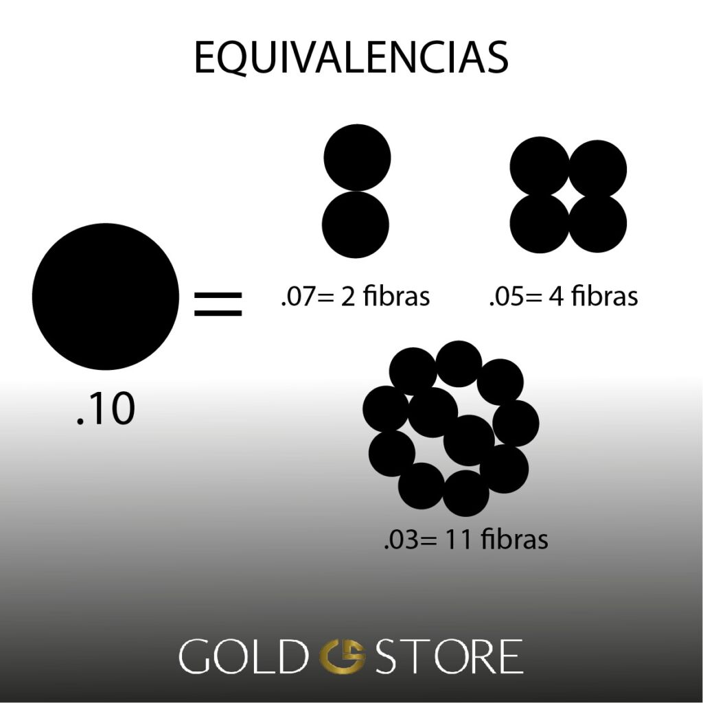 1 fibra de hasta .10 mm de grosor.